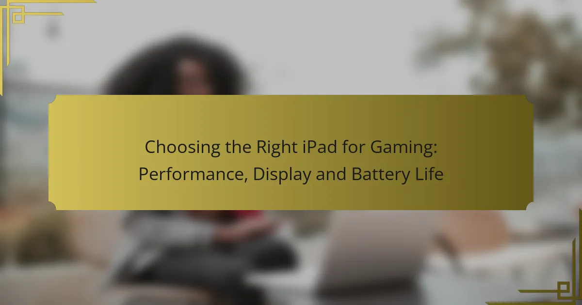 Choosing the right iPad for gaming involves considering performance, display quality, and battery life to ensure an optimal experience. The iPad Pro (M1), iPad Air (5th generation), and iPad (9th generation) each cater to different gaming needs, balancing high performance with budget-friendly options. Key factors such as processor speed, graphics capabilities, and display features play a crucial role in enhancing gameplay fluidity and visual appeal.